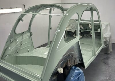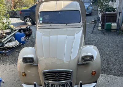 Réparation des éléments extérieurs, remise en forme des pièces, traitement des défauts et application d’une peinture propre et durable, adaptée aux anciennes françaises.